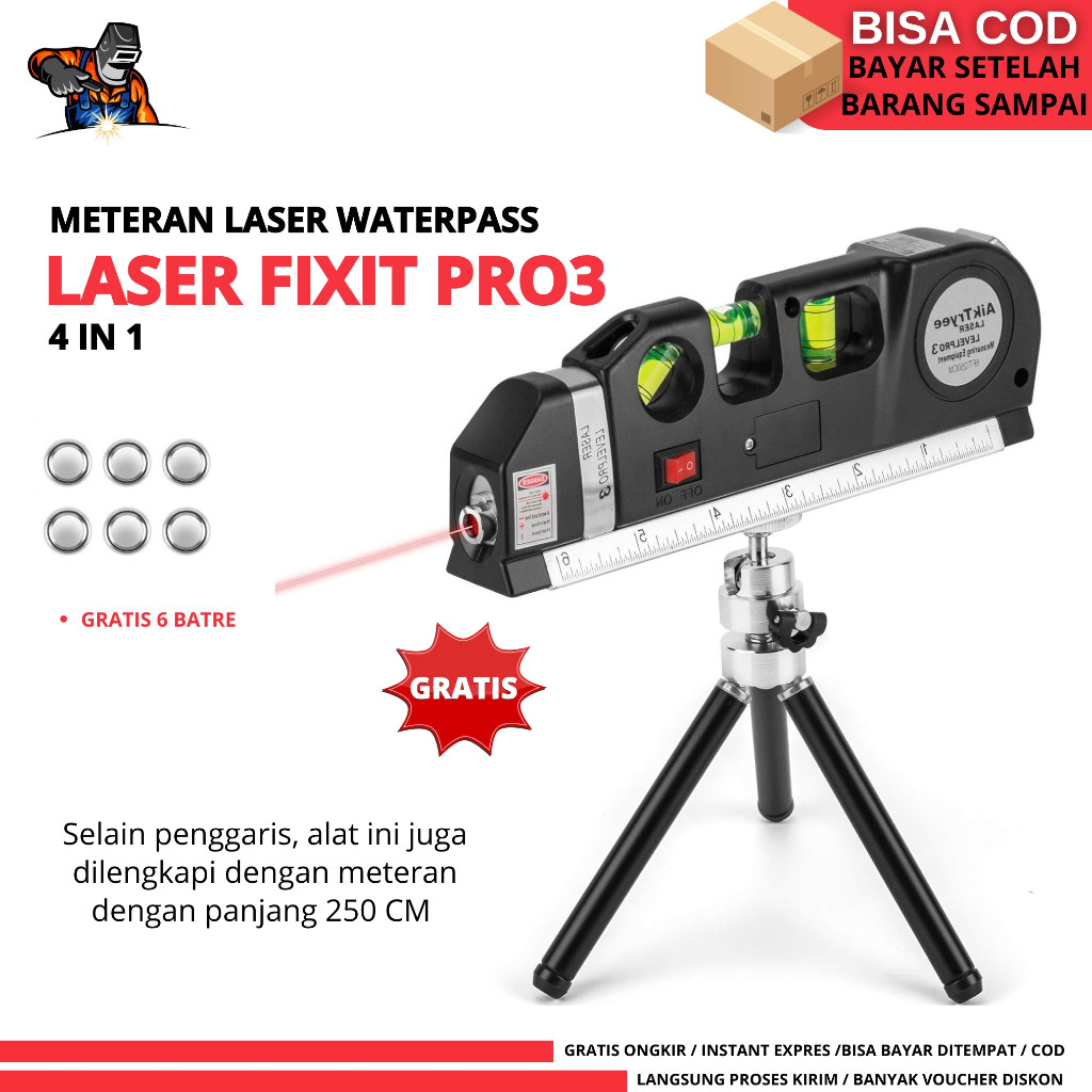 NEW Meteran Laser Alat Pengukur Kemiringan Waterpass Penggaris Laser Tukang Bangunan Free Tripod Laser Fixit Level Pro 3