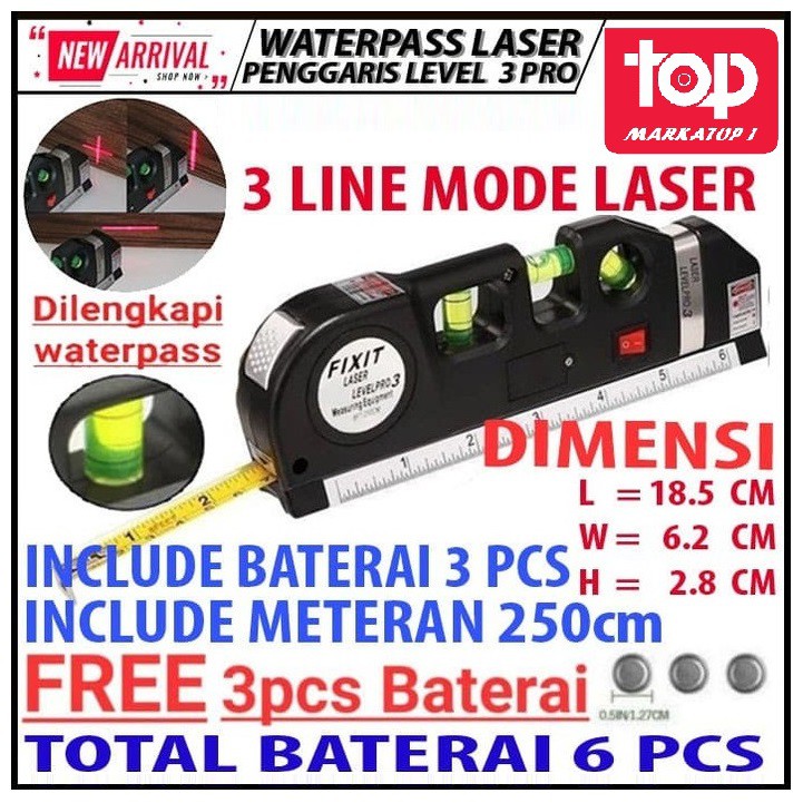 Fixit Laser Level pro3 Kombinasi Meteran Laser Waterpass penggaris AA