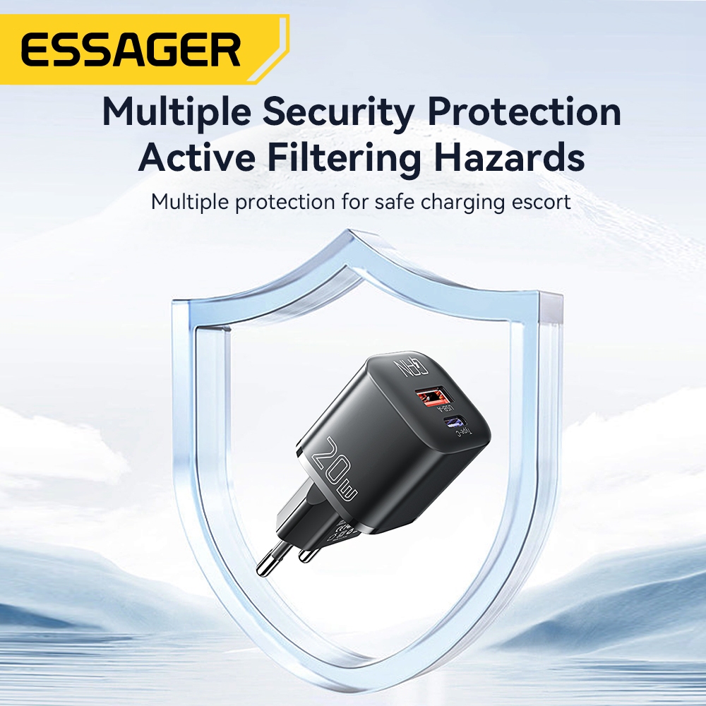 ESSAGER 20W Gan Charger Dual Port Usb A Type C Fast Charging Charger untuk Ip Samsung
