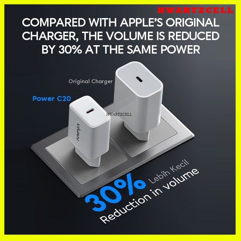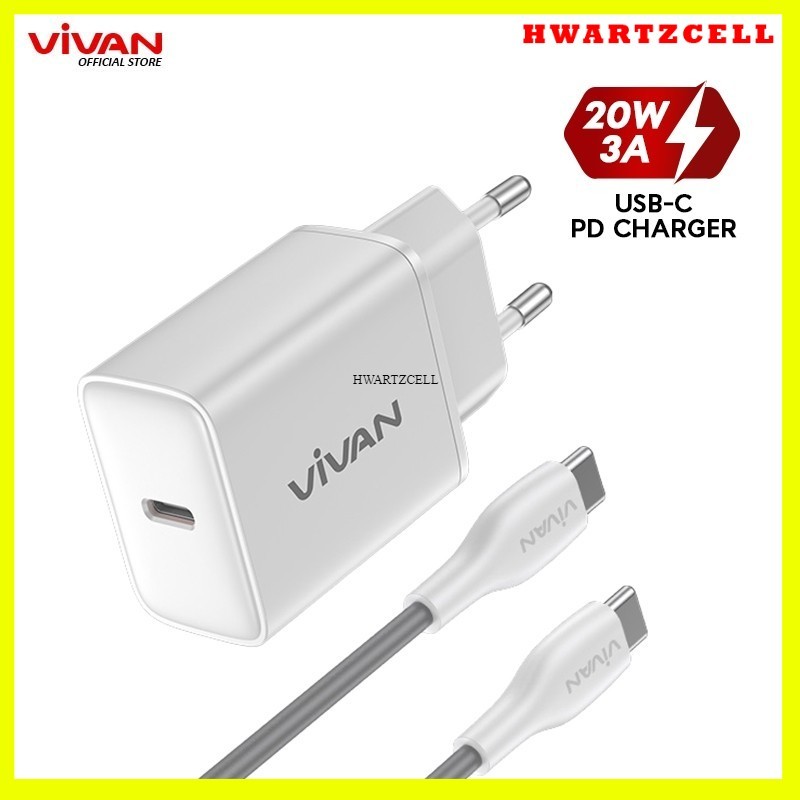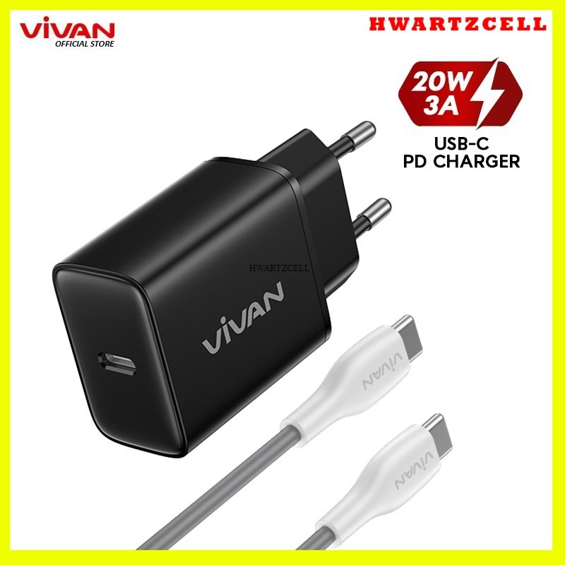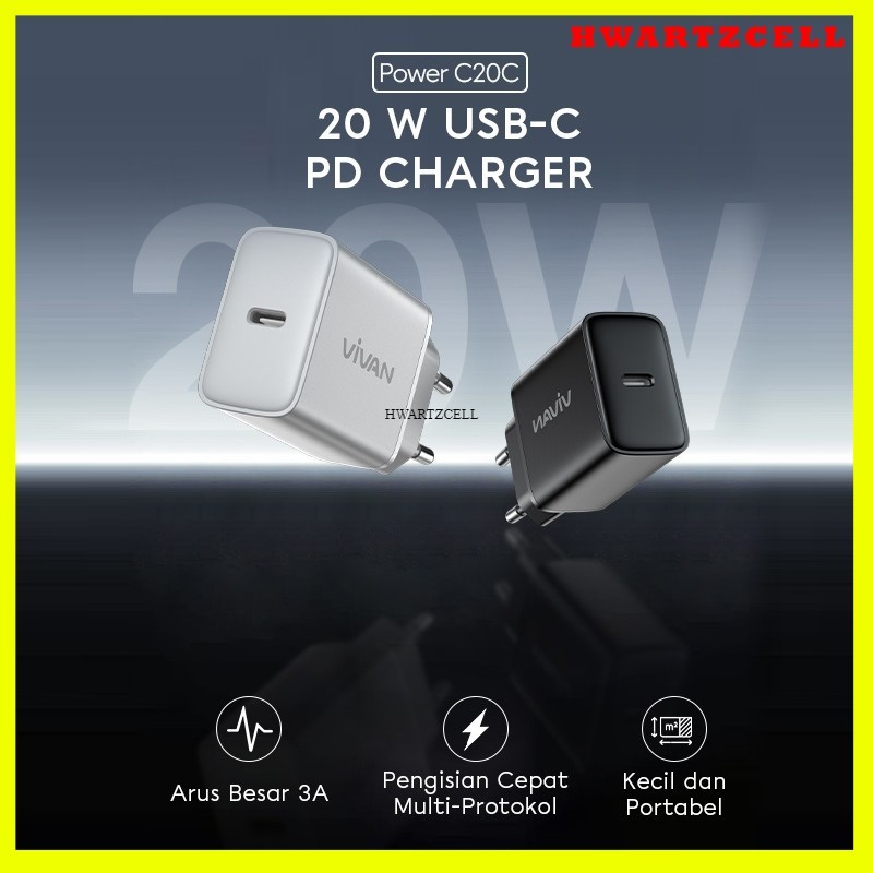 [HWARTZ] VIVAN POWER C20 Mini Charger | PD 20W 3A Fast Charging | 6 Safety Protection plus kabel | Original - Garansi 1 tahun