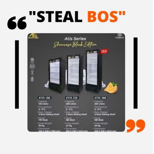 SHOWCASE FRIGIGATE ATIS 238 4 rak display cooler low watt showcase frigigate atis 238 200liter