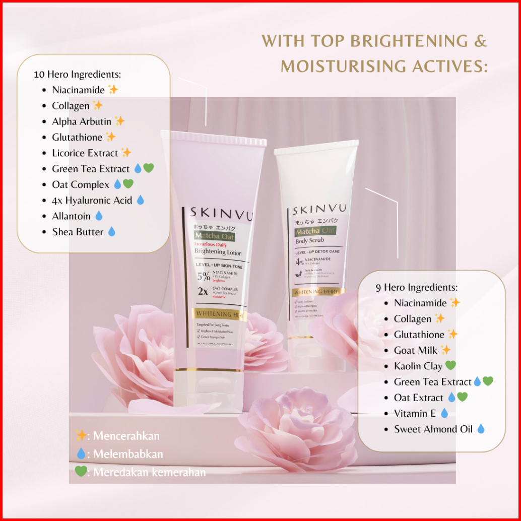 Skinvu Whitening Glowing Set Bodycare - Body Scrub Lulur Pemutih Lotion Booster Serum Infused