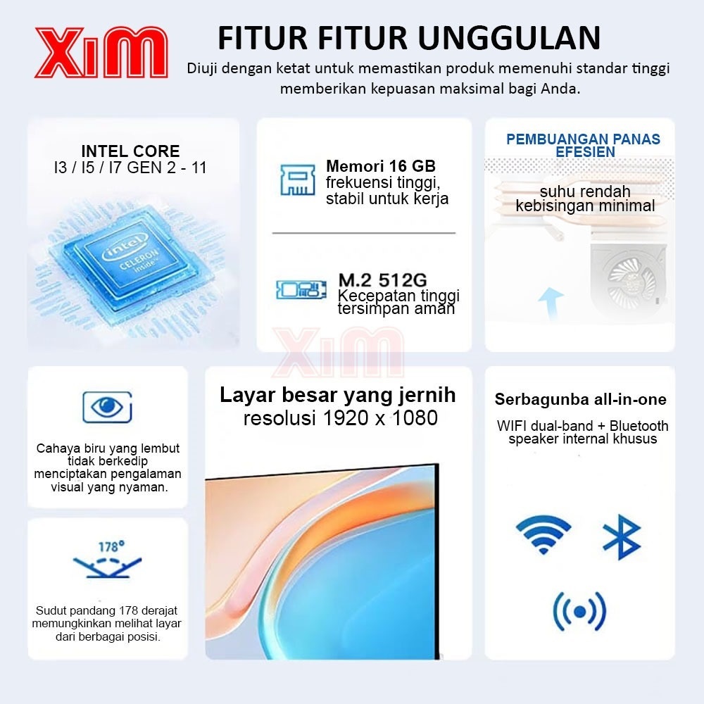 【Xim PC】Pc All In One Intel Core I5-5300U Komputer Full Set Pc Gaming Fullset Mini Pc Monitor Pc Gaming Keyboard Mouse Mouse Pad Gratis Ram 16GB SSD 1TB Full HD