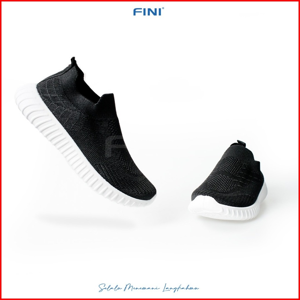 Fini Sepatu Sekolah Hitam Anak Laki Laki Perempuan Rajut Sd-smp Slip On Warna Hitam Hitam Lis Putih Size 34-39 Usia 9-13