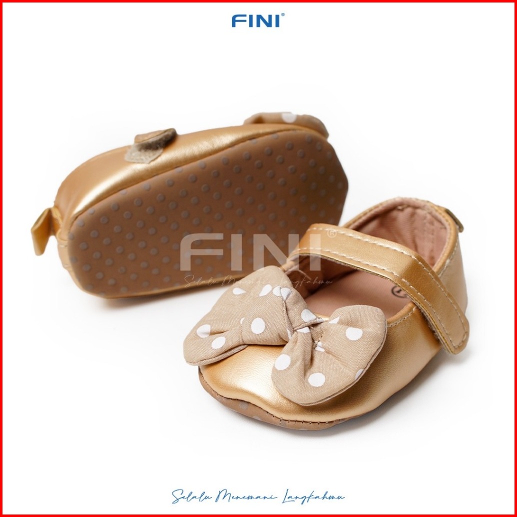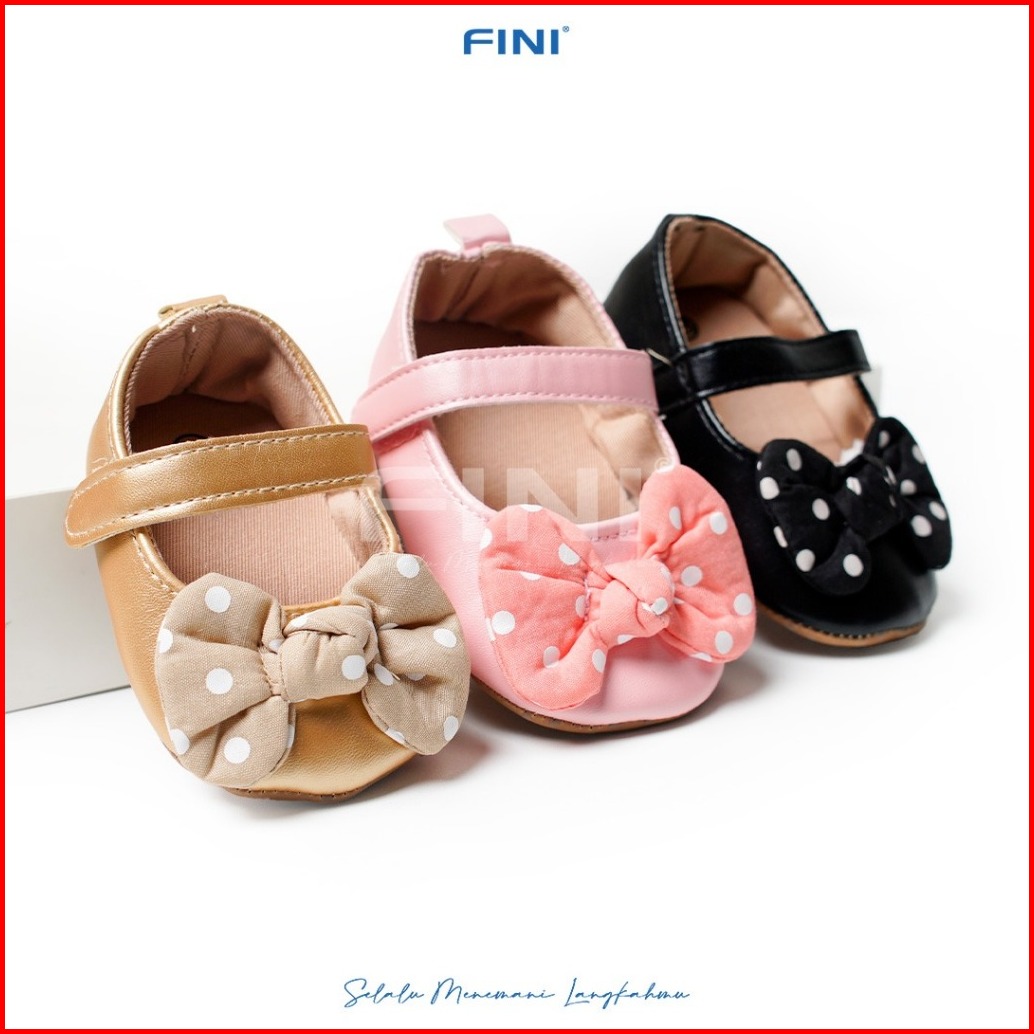 Fini Premium Sepatu Prewalker Newborn Bayi Perempuan Usia 0-15 Bulan Tapak Anti Slip Model Mary Jane Pita Polkadot Size