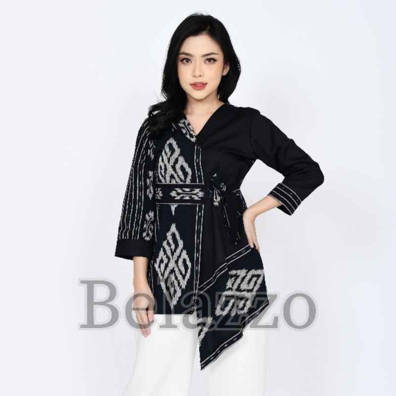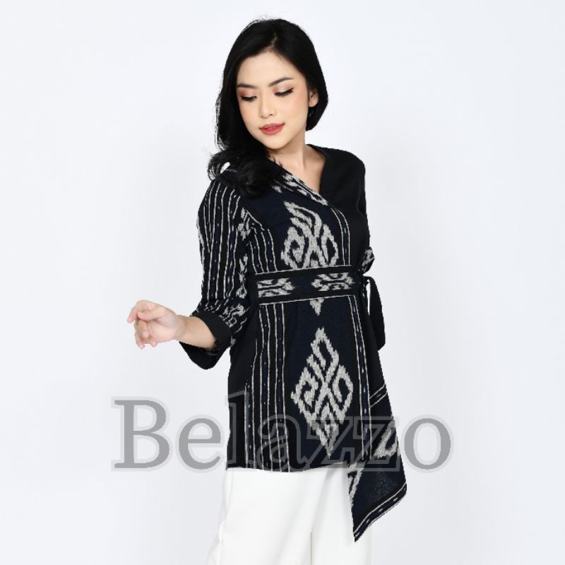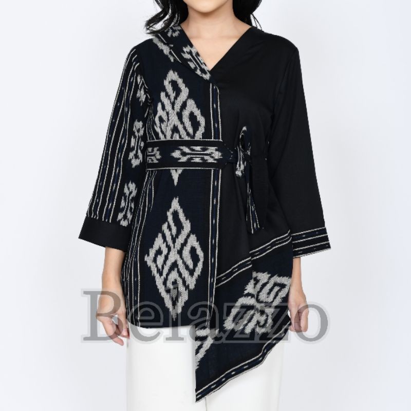 Baju Atasan Blouse Batik Tenun Etnik Wanita Modern Warna Hitam Terbaru - Baju Tenun Wanita - Blus Tenun Wanita Jepara -