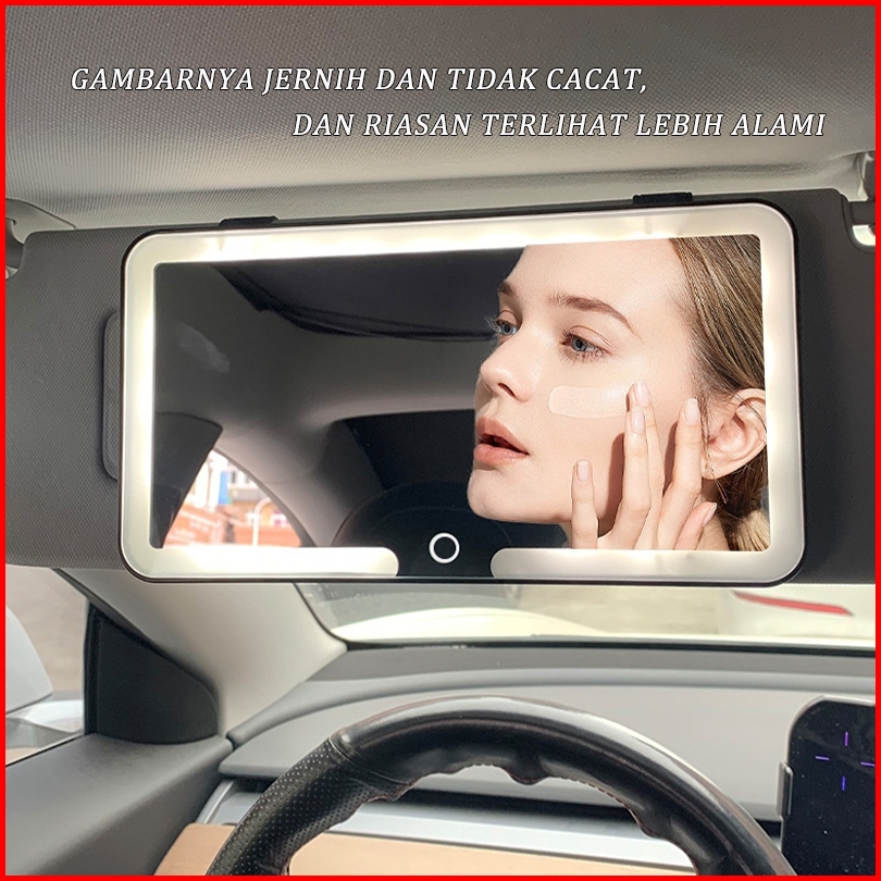 Metalive Cermin Makeup Cahaya Led Rias Di Visor Mobil Pengaturan Kecerahan Sentuh Resolusi Tinggi Dengan Efek Pembesaran