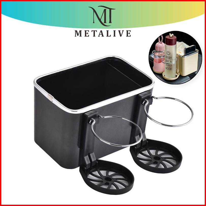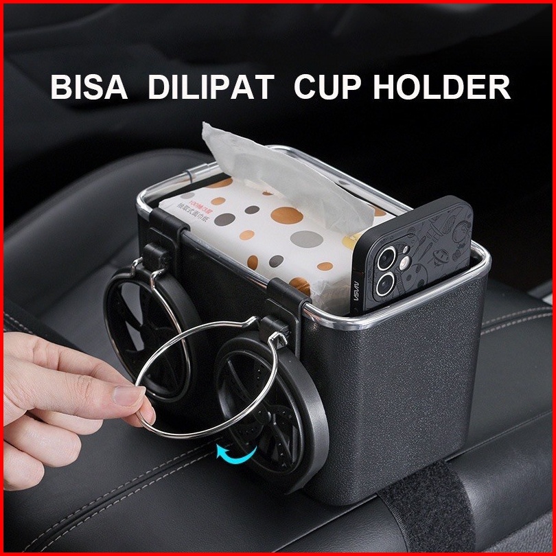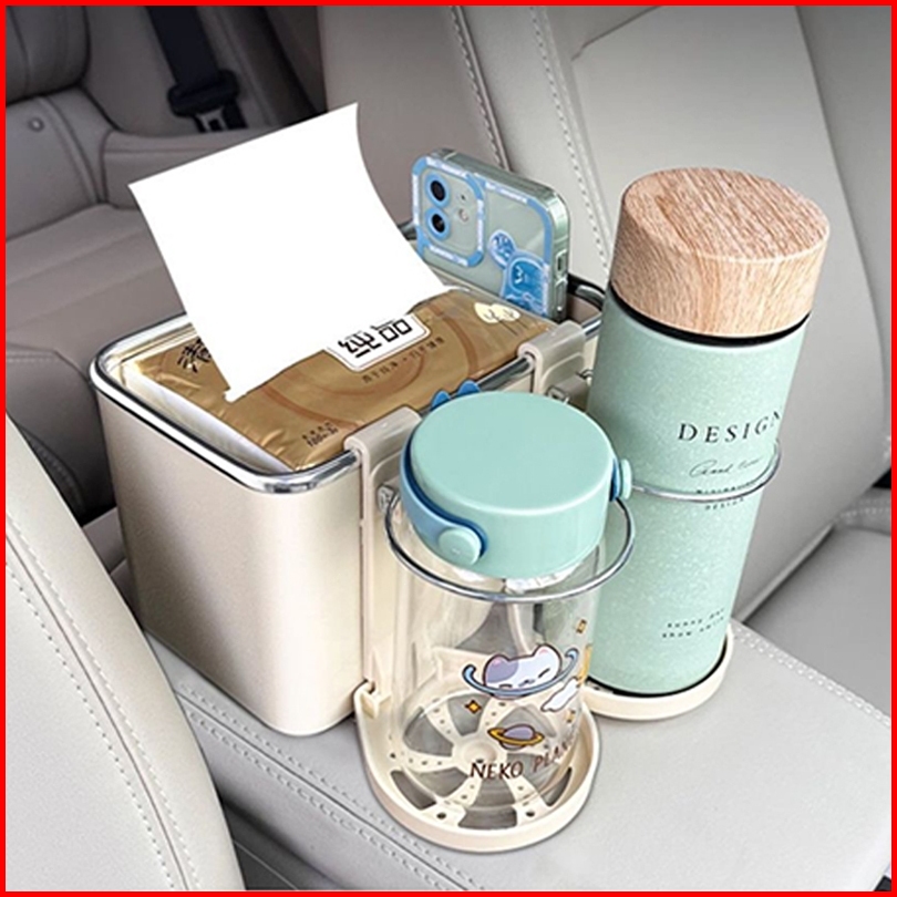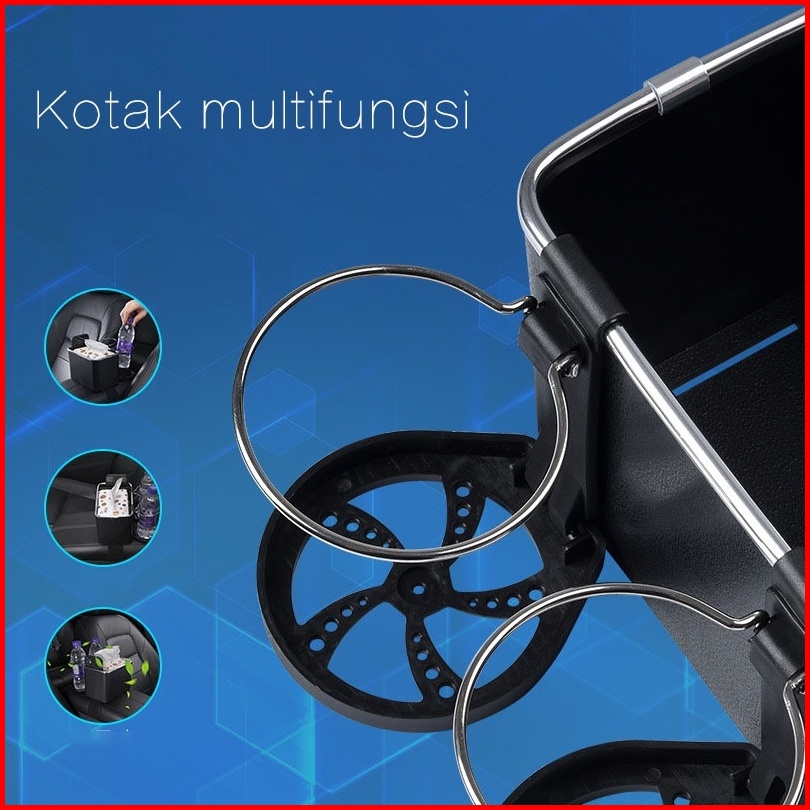 Metalive Tempat Tissue Mobil Multifungsi Car Storage Kotak Tisu Dengan 2 Cup Holder