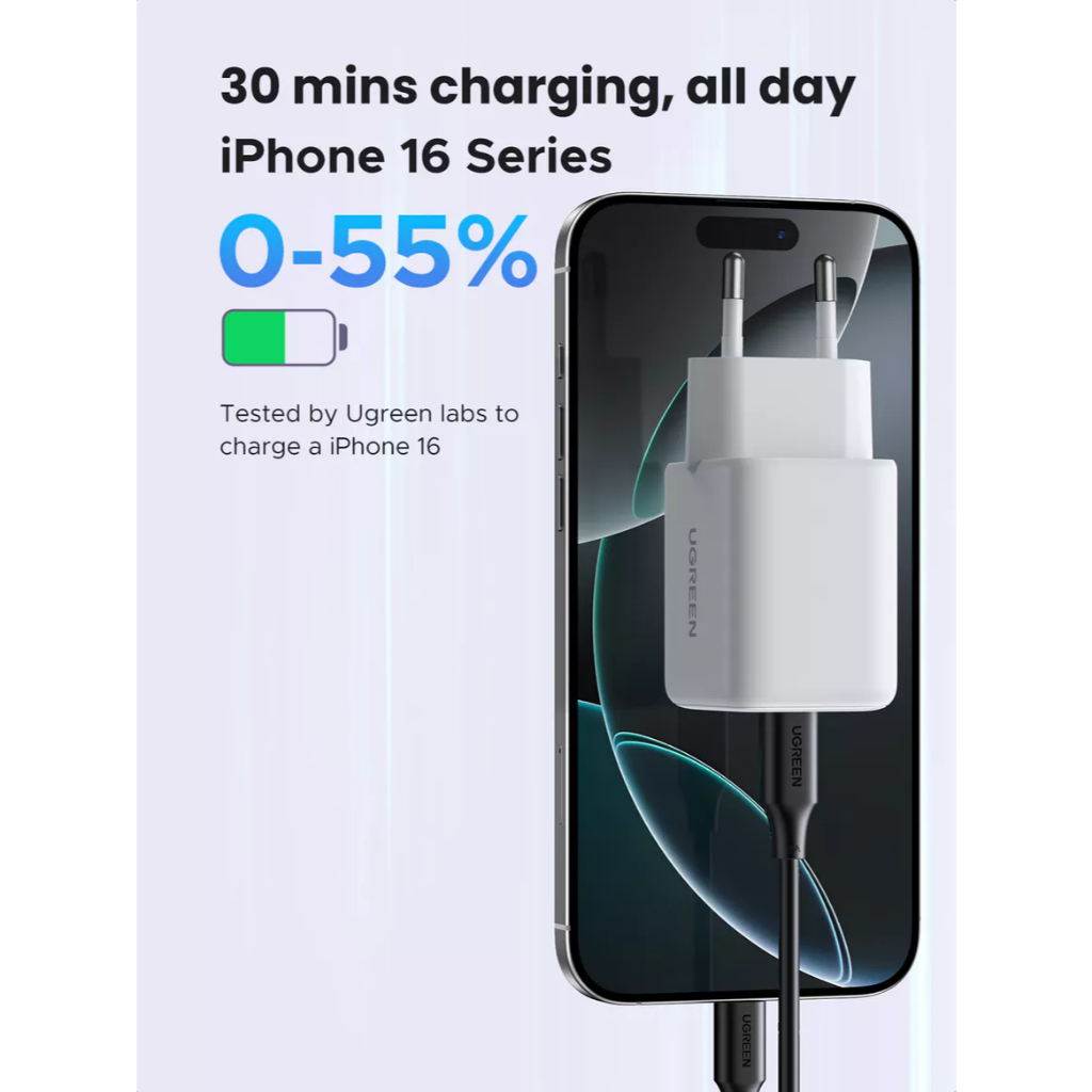UGREEN Kepala Charger Mini GaN N PD Type C Fast Charging 20W 30W 45W Adapter For iPhone Android