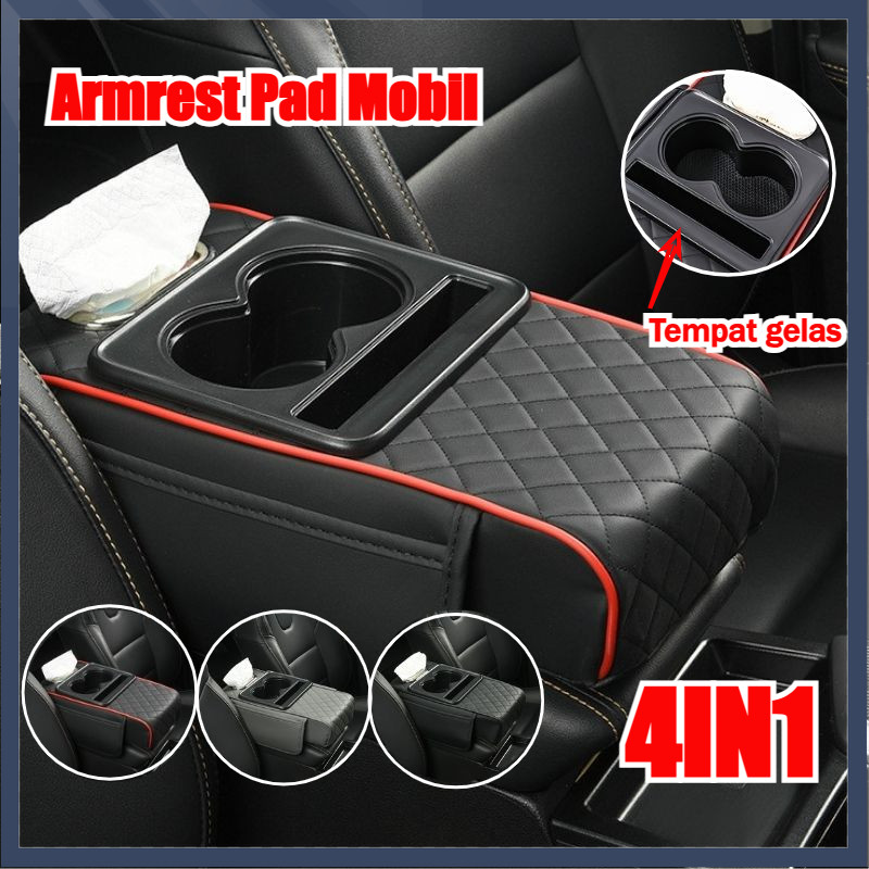【】4in1 Armrest Pad Mobil Premium Tempat Tisu Kotak Tissue Mobil Kulit Tempat Tissue Kompartemen Mobil Serbaguna Premium