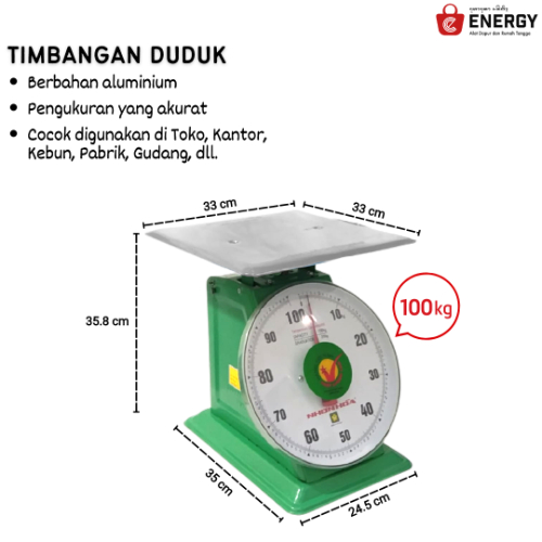 Timbangan duduk- jarum 20kg Merk CROWN stainless-barang kokoh