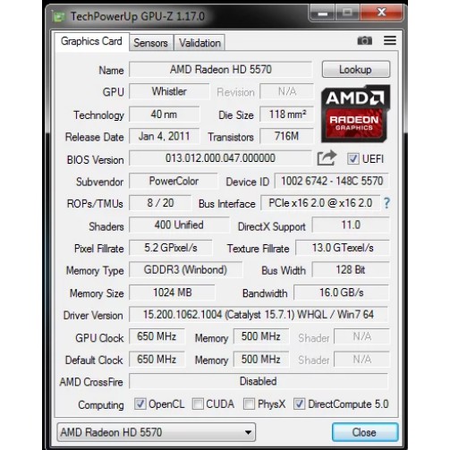 VGA HD5570 1GB 128Bit DDR3 support dirext 11