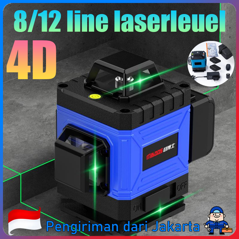 Laser Level 4D Waterpass laser multifungsi 8 line 59000MAH laser tukang bangunan 12 line laser level 360 Rotari Bangunan Waterpass Keramik Meteran Laser Hijau dengan Remot Laser Siku Waterpass Digital
