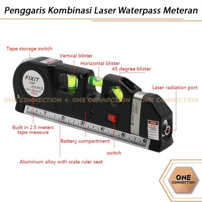 Fixit Level Pro3/Levelpro3 Penggaris Kombinasi Laser Waterpass Meteran