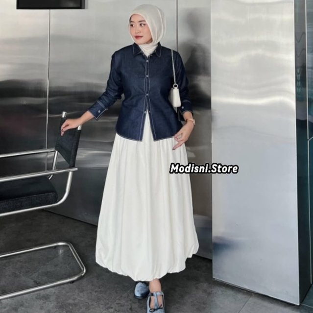 KEMEJA ELISA Crop Jeans - Kemeja Jeans - Atasan Wanita Denim - Kemeja Basic Lengan Panjang - Kemeja Wanita