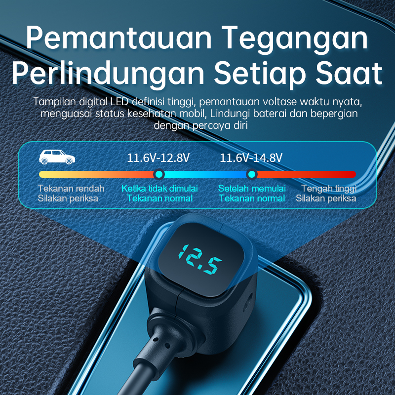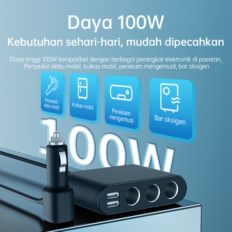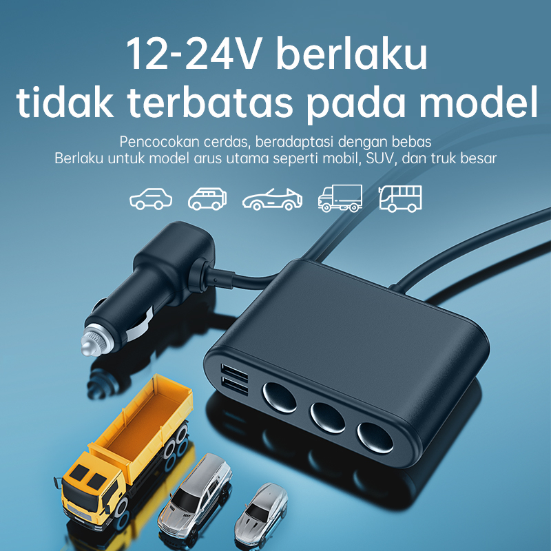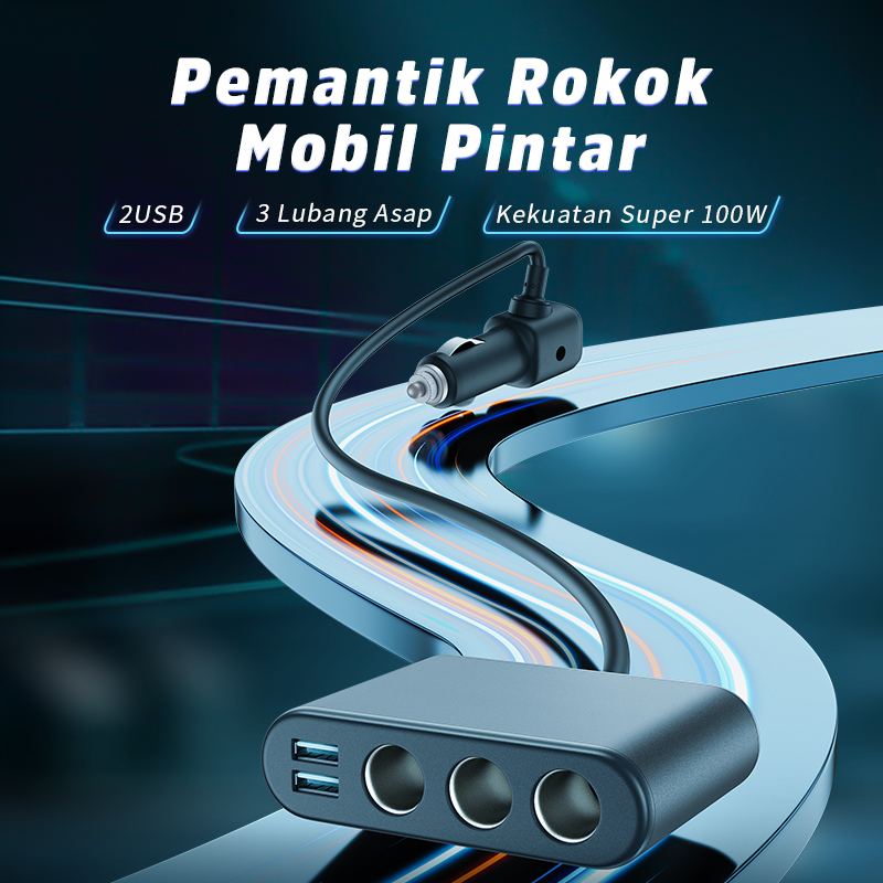 (HOT)BASIKE 5 in 1 Car Charger Fast Charging Mobil 100W Multifungsi Colokan 2 USB 3 Lubang Socket
