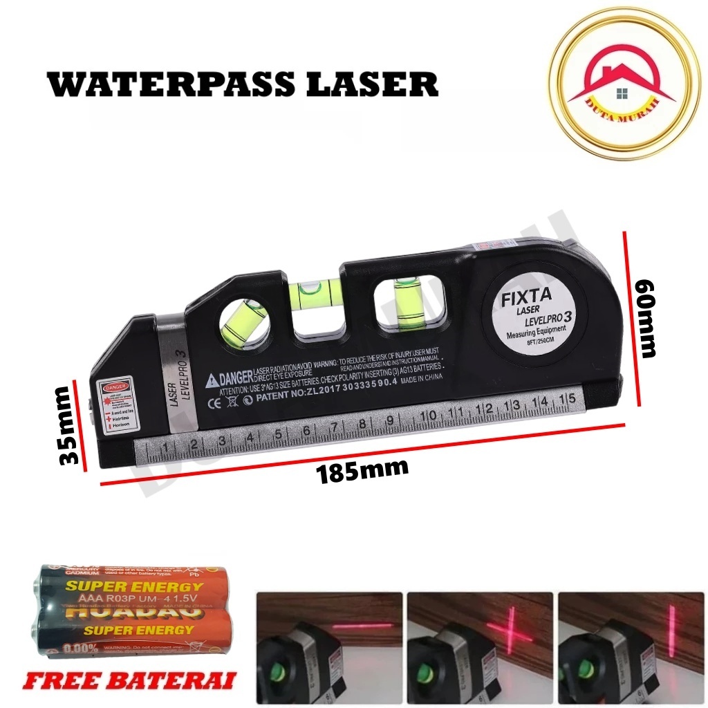Laser Level Pro 3 with Meteran Penggaris Laser Waterpass Meteran Laser 250 Cm