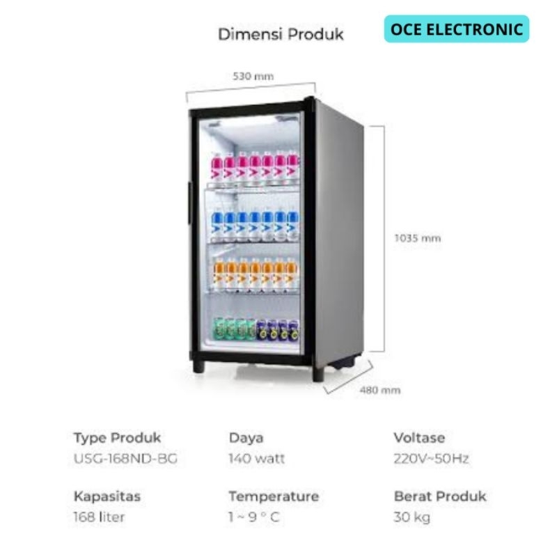 SHOWCASE MASPION USG-168ND 168 3 RAK LEMARI DISPLAY PENDINGIN
