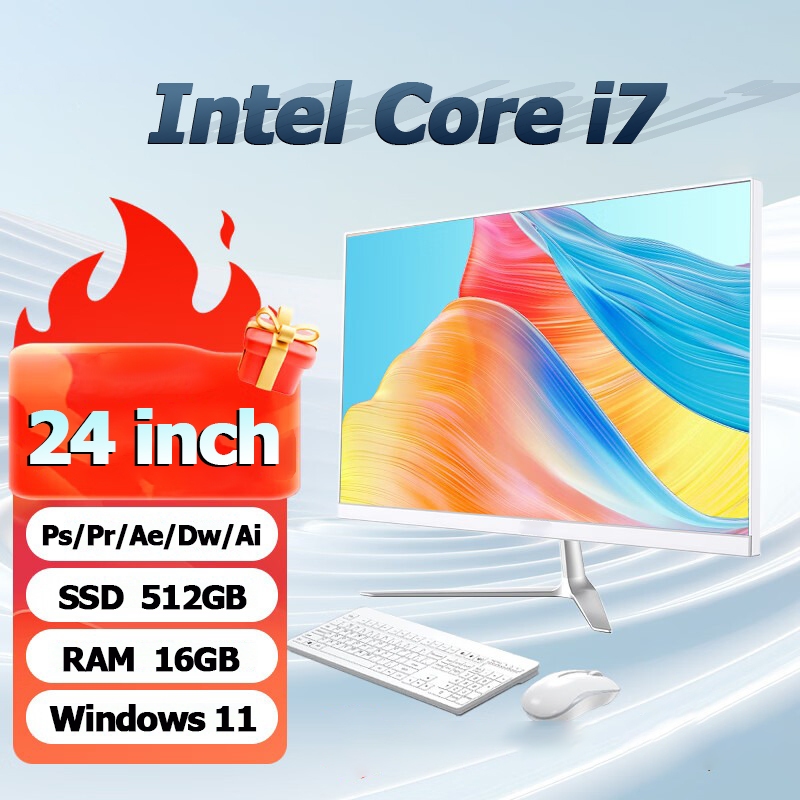 Lenovo 24 inci Full HD Intel core i7 All-in-one PC, 16GB + 512GB SSD, All-in-One untuk game dan kantor, sistem Win 11 gratis, mouse keyboard gratis