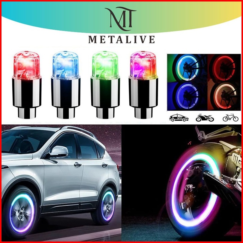 Metalive 2pcs Led Tutup Ban Motor Pentil Ban Mobil Sepeda Sensor Ganda Cerdas Lampu Roda Katup