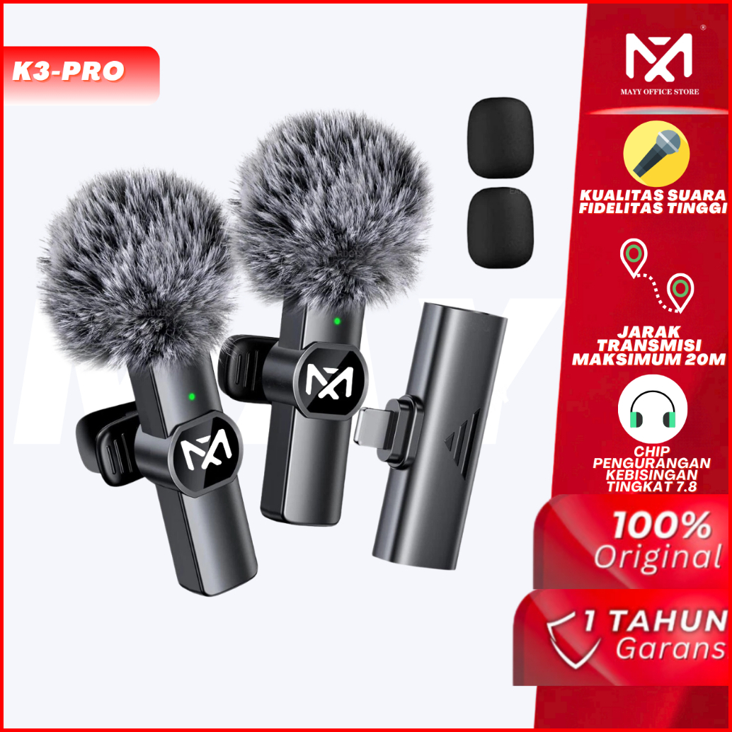 Mayy Id K3 Pro 2 Mic Wireless Clip On Microphone Mikrofon Lavalier Hp Plug Play