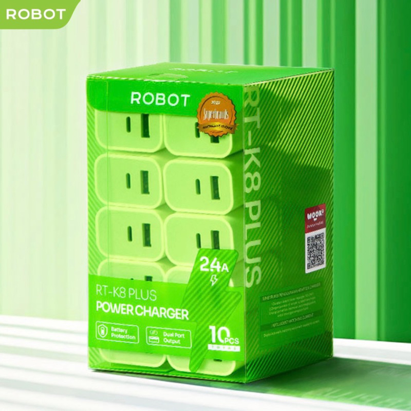 ROBOT Adaptor Charger RT-K8+ Plus Batok Charger 2.4A Small & Portable - Garansi 1 Tahun (1 pcs)