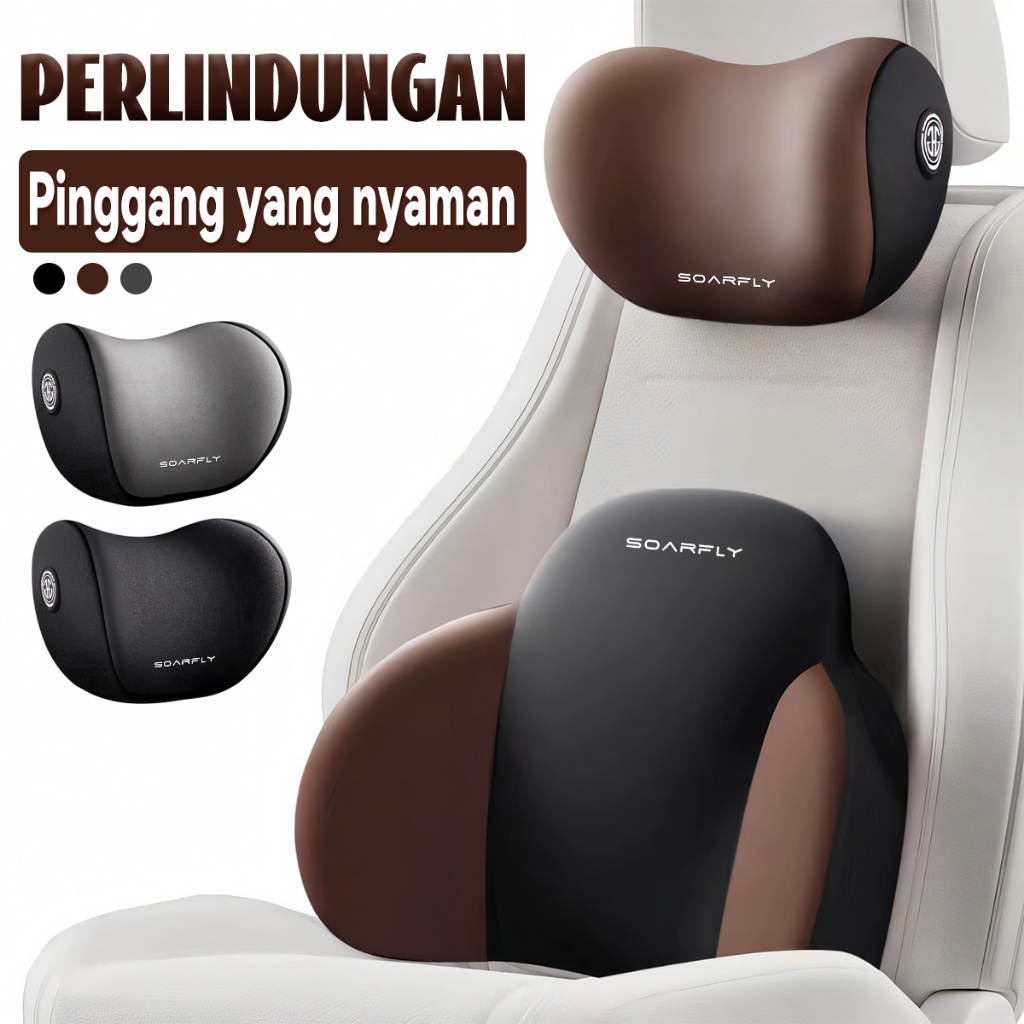【 Ready】SOARFLY C21 Bantal Leher Mobil Sandaran Leher Penopang Busa Memori Set bantal pinggang & Bantal Leher Mobil Kualitas Kulit Premium mewah bantal mobil set