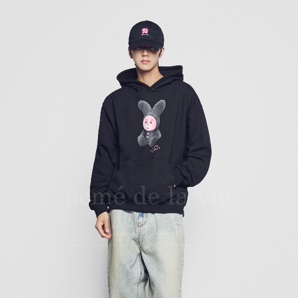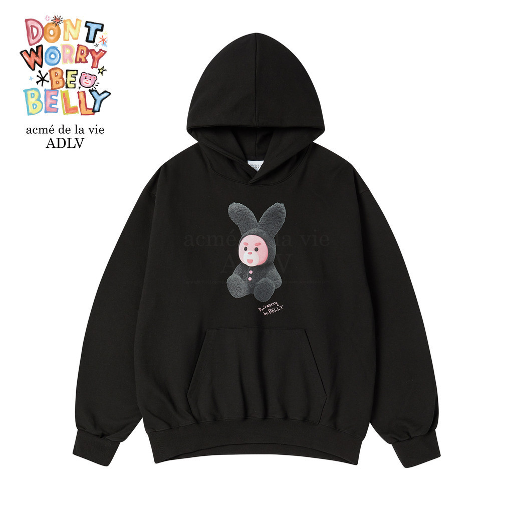 ADLV Rabbit Belly Hoodie Black - Hoodie Oversized Fit Unisex acme de la vie