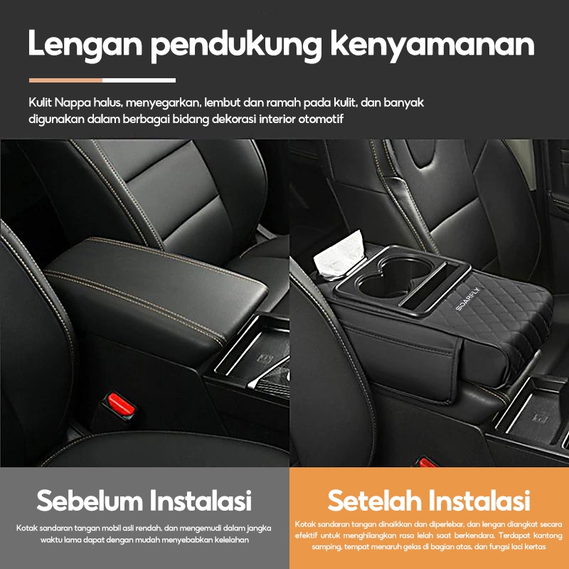 [] Armrest Pad Mobil Kotak Tisu Mobil Tempat Botol 4 In 1 / Console Box Storage / Cover Tisu Premium