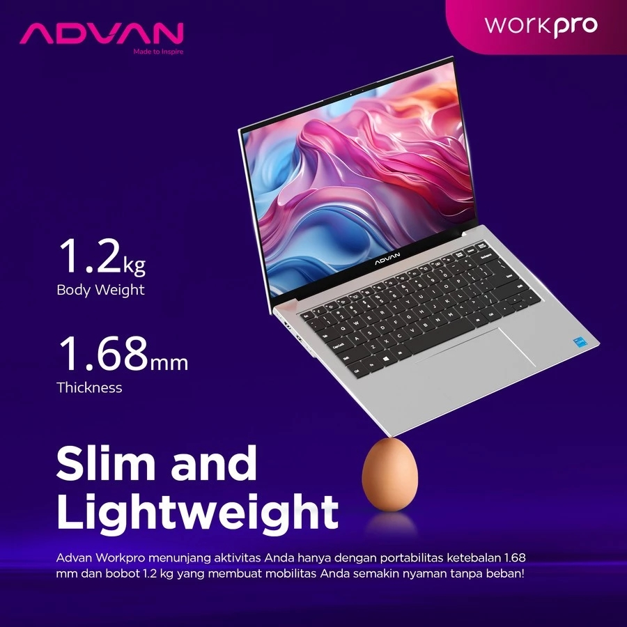 ADVAN Workpro Lite Intel Core i3 1220P Intel Core i5 12450H RAM32GB SSD1TB 14'' Fhd Ips Windows 11