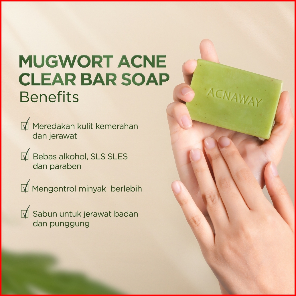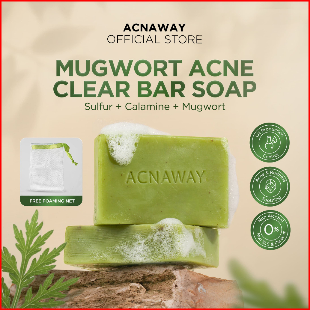 Acnaway Mugwort Acne Clear Bar Soap - Sabun Organik Natural Acne Soap Untuk Jerawat Badan Tanpa Paraben Alkohol With Sul