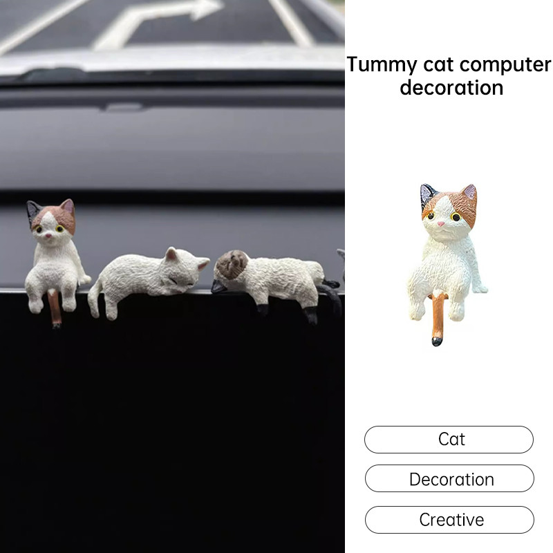Hiasan Konsol Tengah Mobil Boneka Tidur yang Dapat Dipasang di Mobil Hiasan Desktop Kucing Kecil Geoolimy