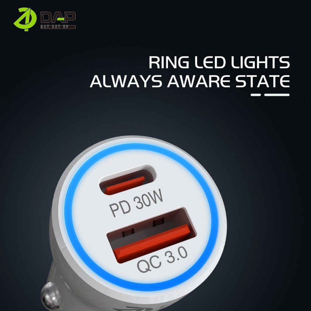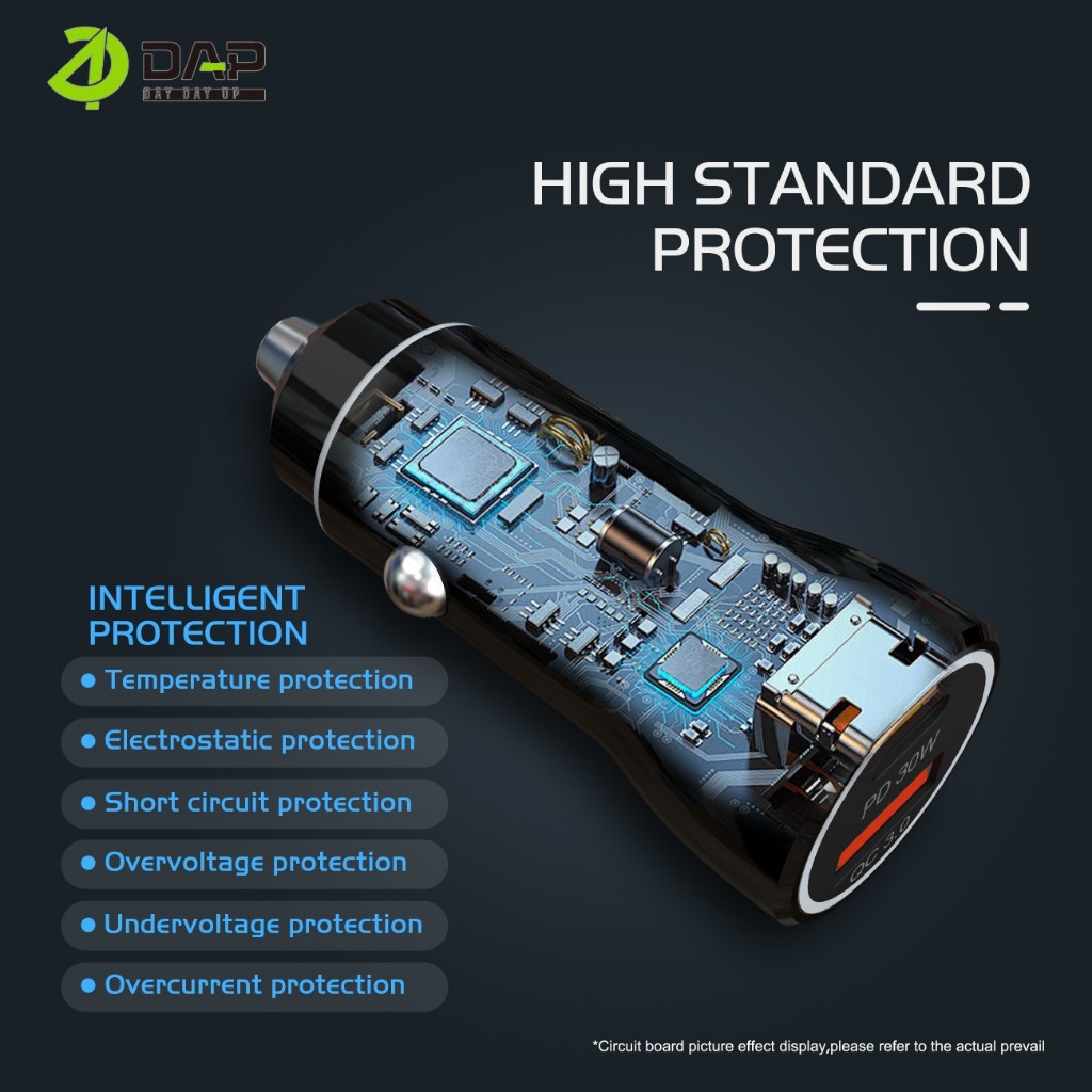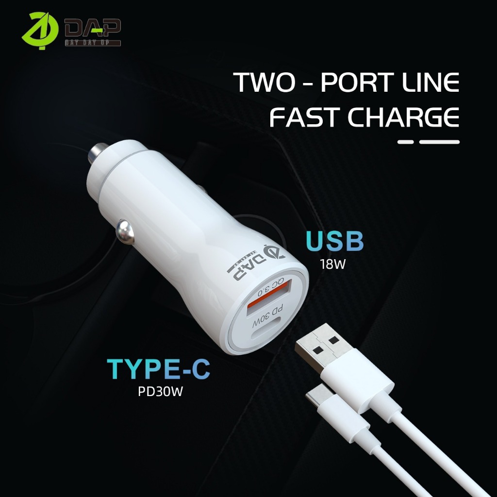 DAP D-CCP6 Car Charger 48 Watt ( PD 30 Watt QC 3.0A Dual Port USB & Type C )Fast Charging - Garansi 1 Tahun