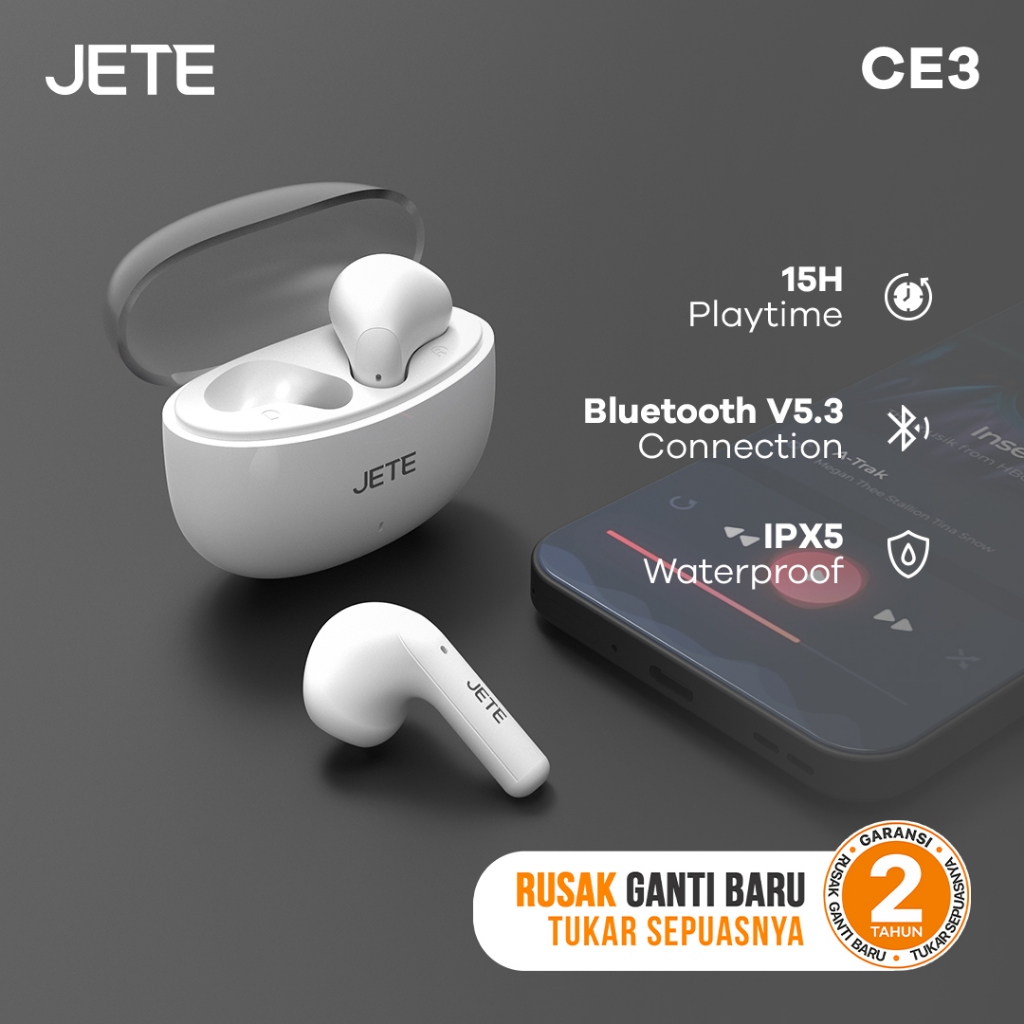 TWS True Wireless Stereo JETE CE3 Bluetooth 5.3 IPX 5 - Garansi 2 Tahun