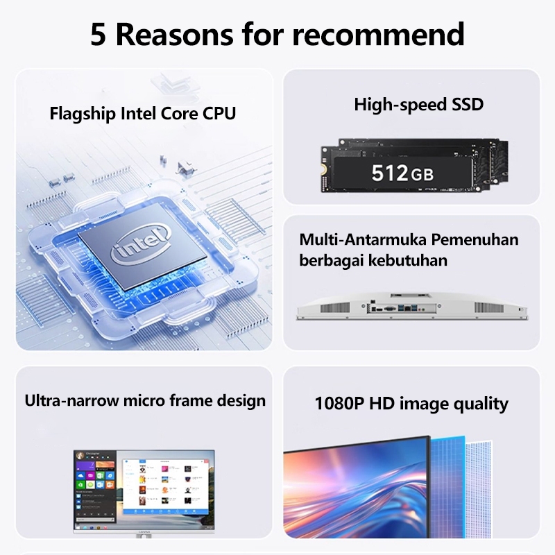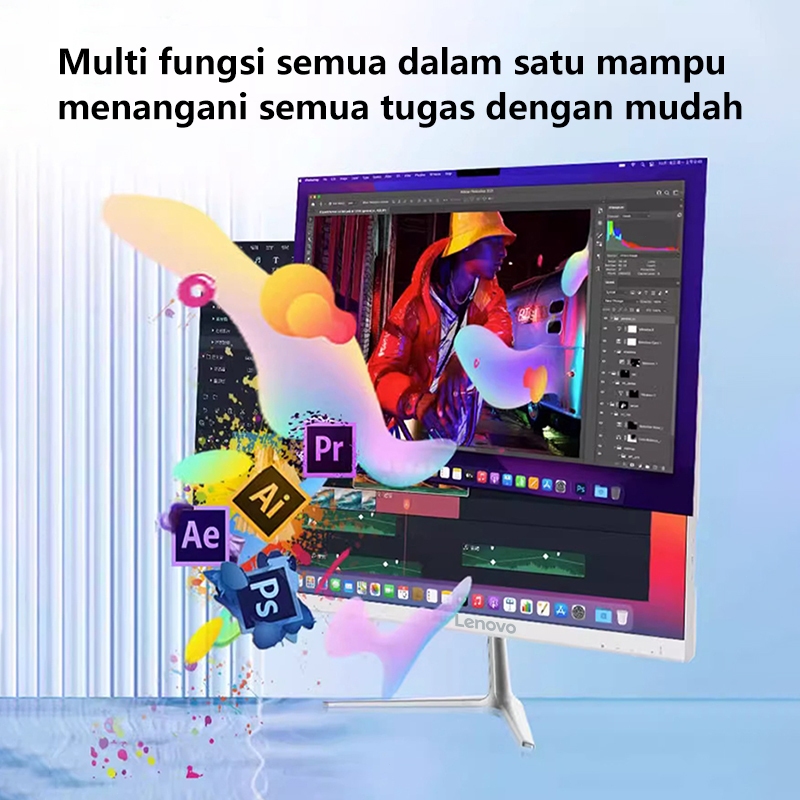 Lenovo Komputer Full PC All-in-One 19"/22"/24"/27" HD Super Tipis Intel Core i3/i5/i7 Untuk Rumah, Belajar, Kantor dan Gaming RAM 8GB/16GB SSD 256GB/512GB/1TB