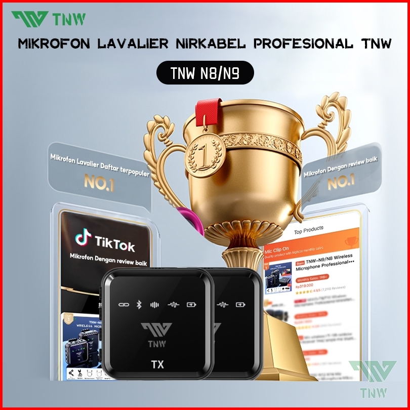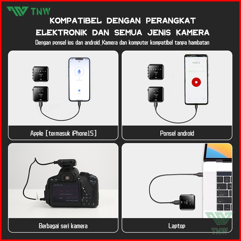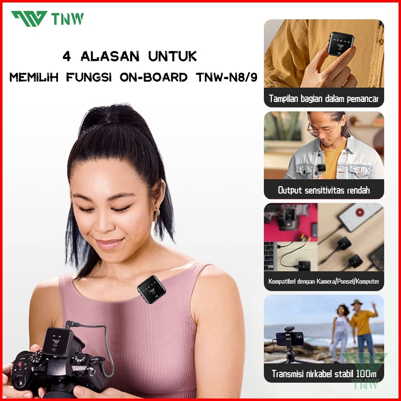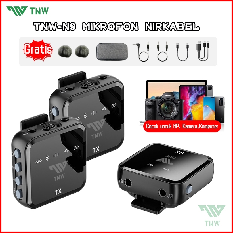 Tnw-n9 N8 Wireless Microphone Professional Wireless 2 Mikrofon Untuk Hp Dslr Zoom Youtube Vlog Lavalier Mic Clip On