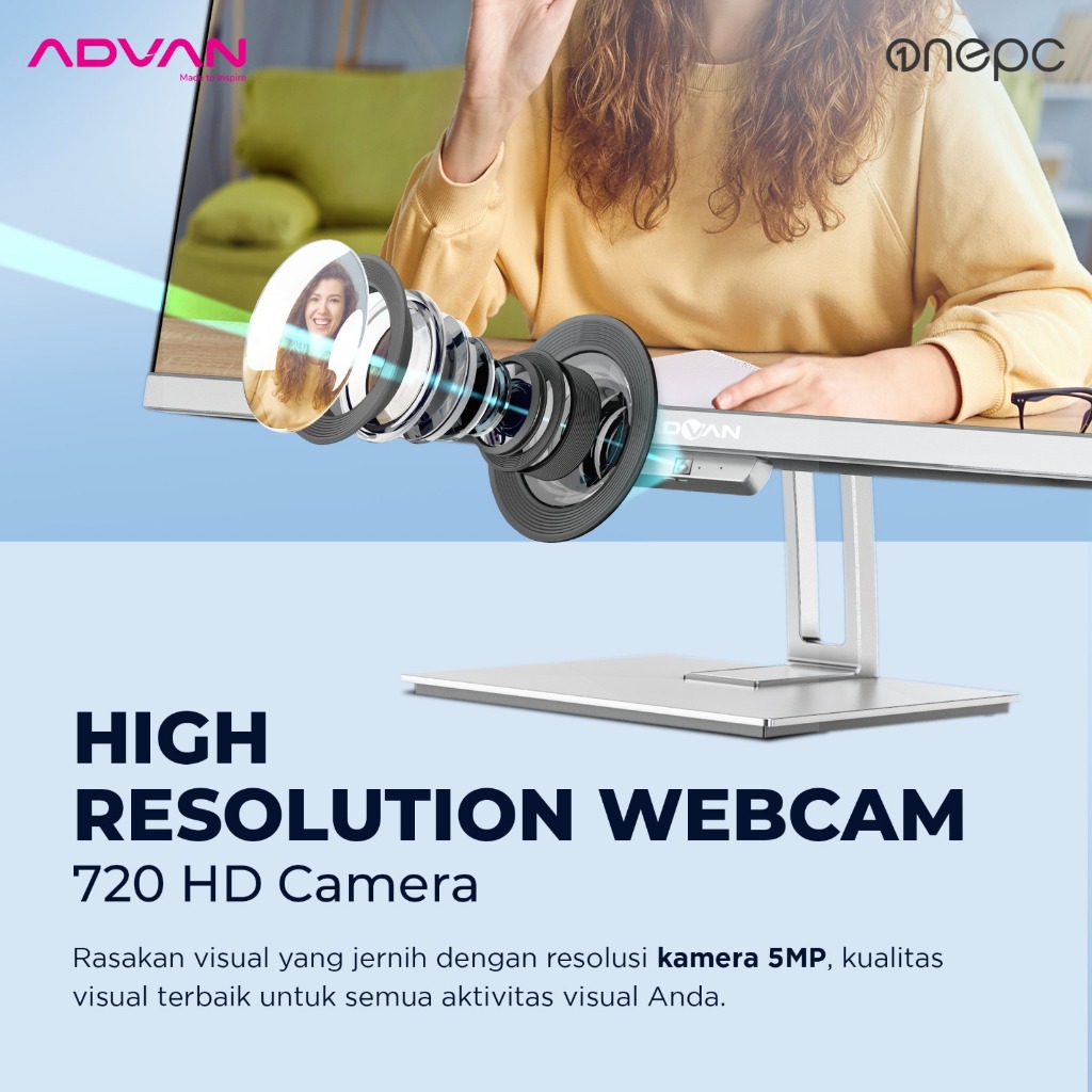 ADVAN All In One PC AIO AMD Ryzen 5 3500U 8GB/512GB 23.8 Inch 65W Power Saving 99 PERSEN sRGB Free Windows 11 Original