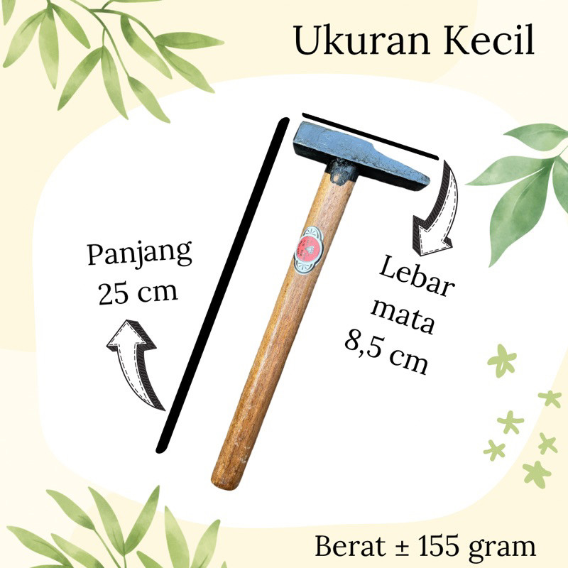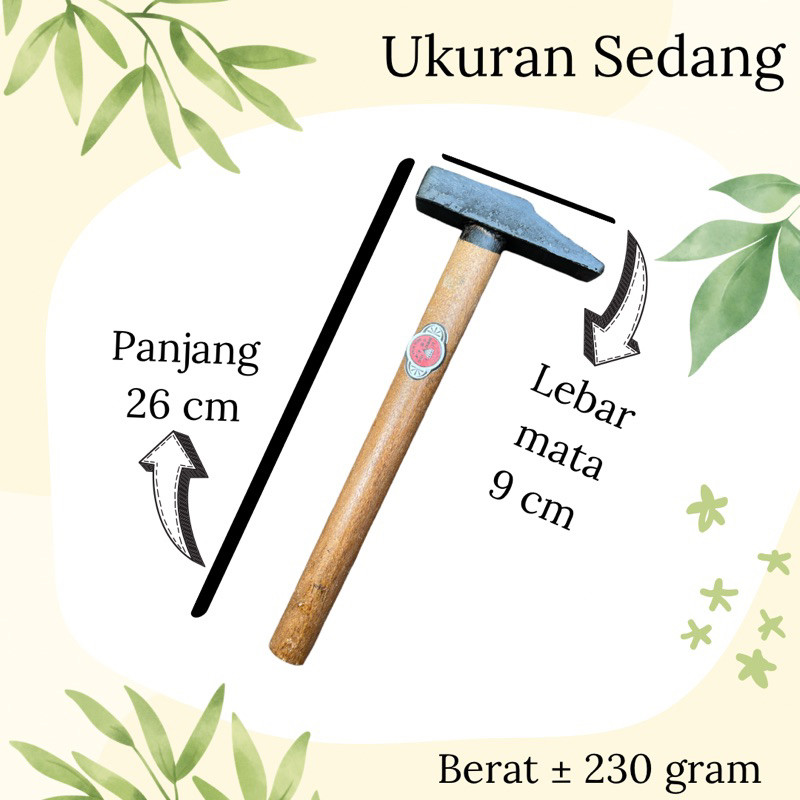 Palu Kaca Gagang Besi Cor Kayu Alat Tukang Ukuran Kecil, Sedang, Besar
