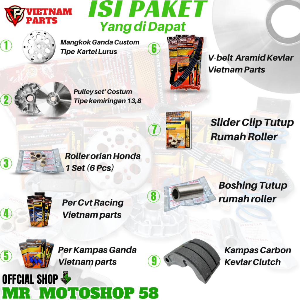 FULL UPGRADE PULLEY CVT VARIO 125 OLD KZR VARIO 125 LED OLD PER CVT RACING ROLLER MANGKOK KAMPAS