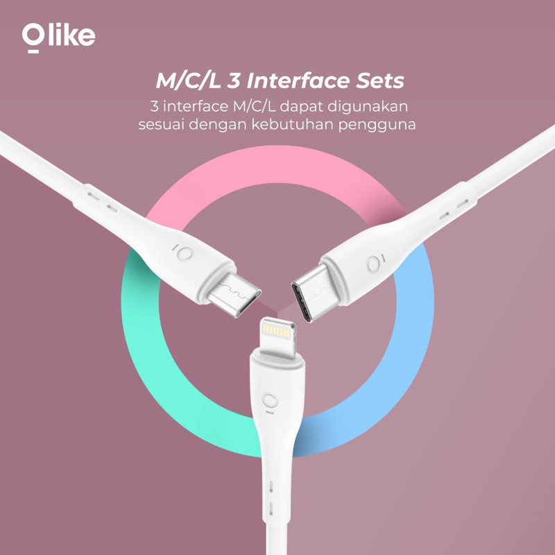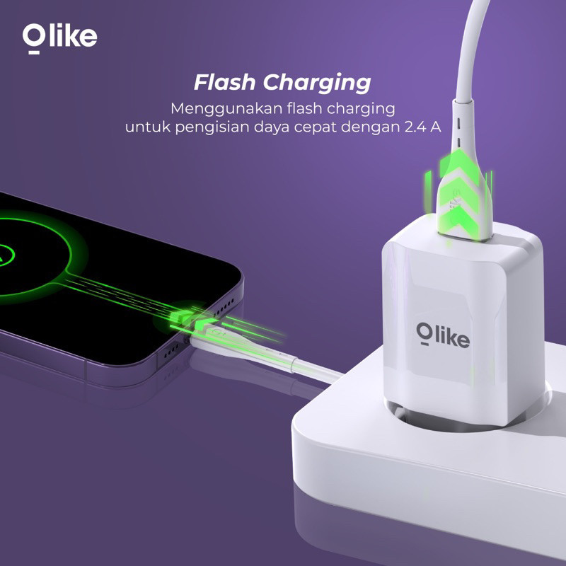 OLIKE Adaptor Charger C107 Batok Charger 2,4A Tersedia Pilihan Kabel Micro / Lightning / Type-C