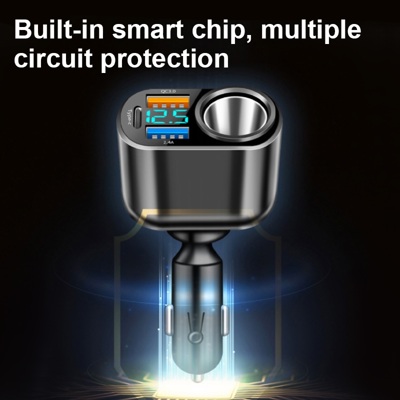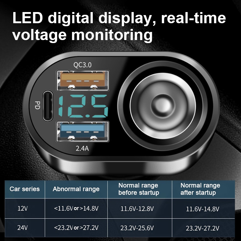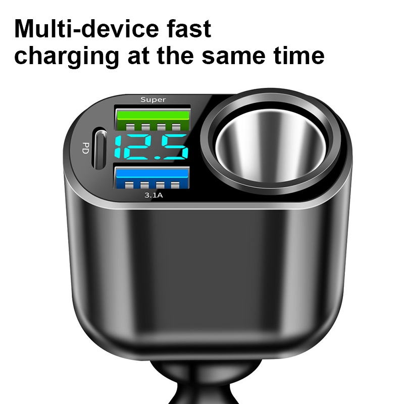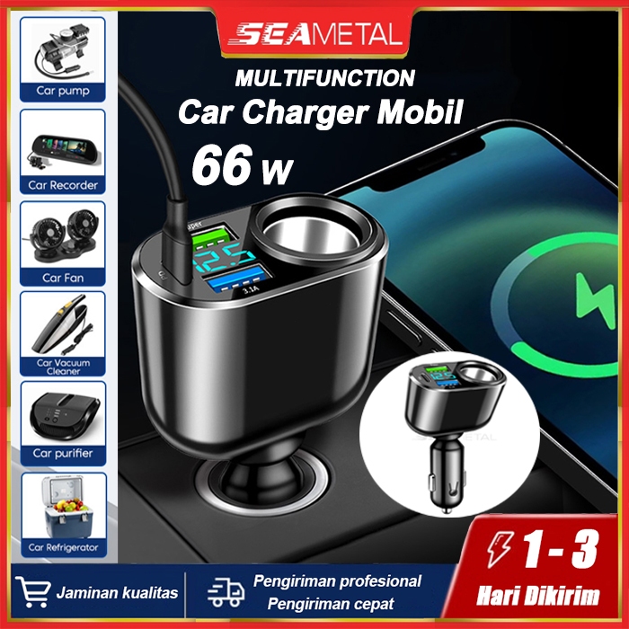 SEAMETAL Car Charger Mobil 66W Fast Charging 2 USB PD 3.1A + 1 Cigarette Plug Untuk Kamera Dasbor Kamera Telepon
