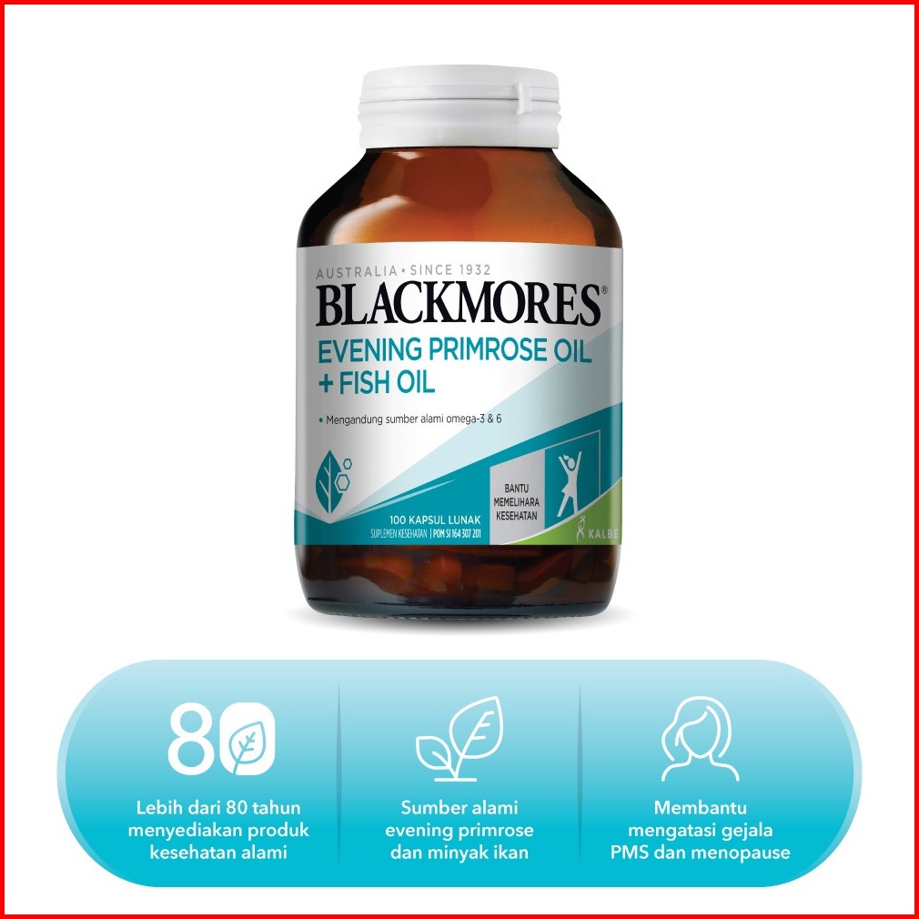Blackmores Evening Primrose Oil Plus Fish Oil Bpom Kalbe 100 Caps Suplemen Pereda Gejala Pms