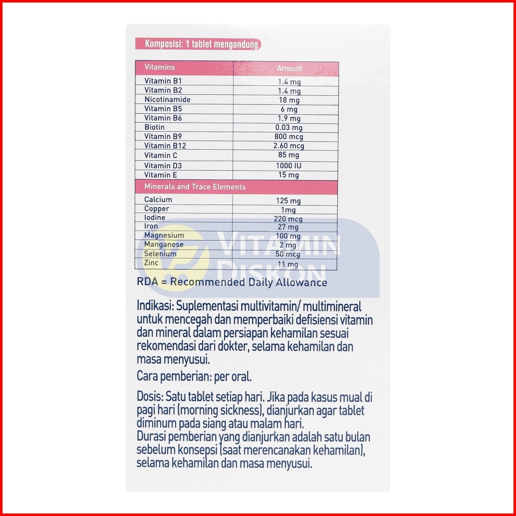 Elevit Multivitamin Mineral Trace Elemen Dan Vitamin D3 1000 Iu Promil Asam Folat Kehamilan 30 Tablet