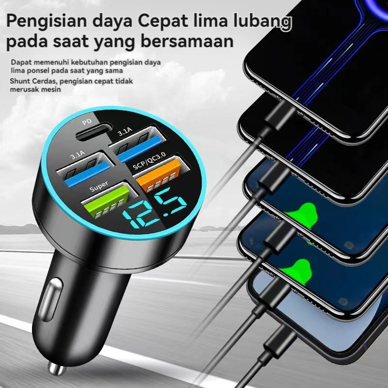 Car Charger Universal Charger Mobil 4USB 66W Mendukung QC 3.0 Original Colokan Mobil Fast Charging Adaptor 5in1