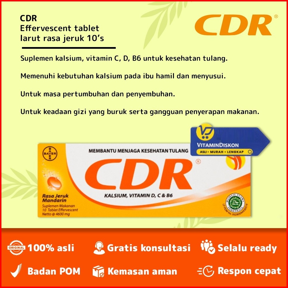 Cdr Effervescent 10 Tablet Suplemen Vitamin Mineral Harian Untuk Kekebalan Tubuh Dan Antioksidan