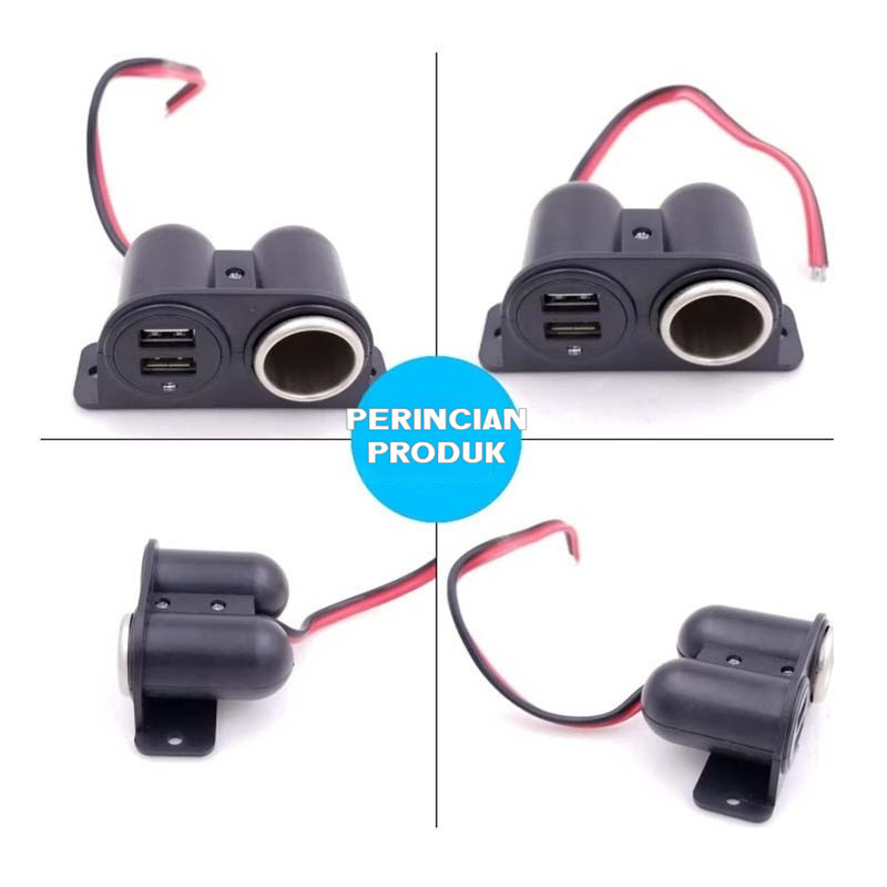 Car Charger Mobil 2 USB Port + Cigarette Lighter Plug Adapter 3.1 A multifungsi Colokan Mobil