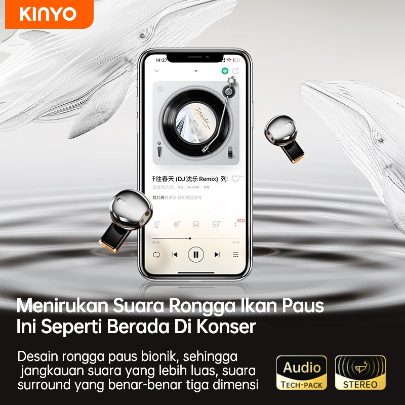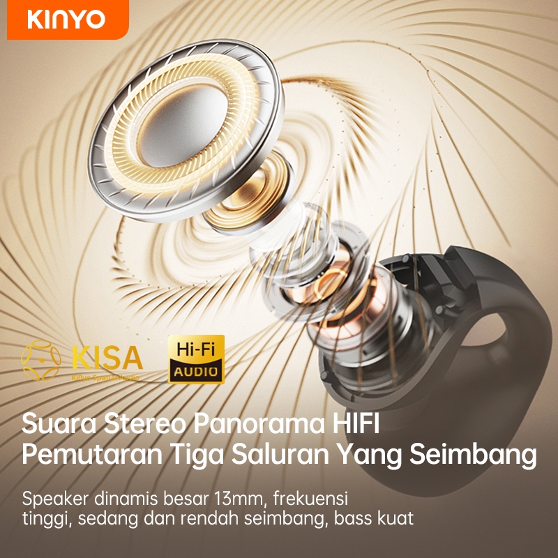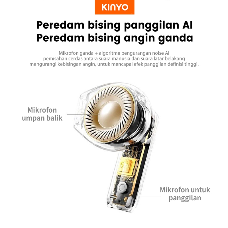 Kinyo A20 TWS four headset bluetooth 5.4 Headset Wireless in ear AI HD Noise Reduction call Henset Ear Clip 4g Ringan Nyaman Dipakai