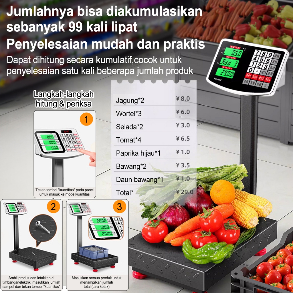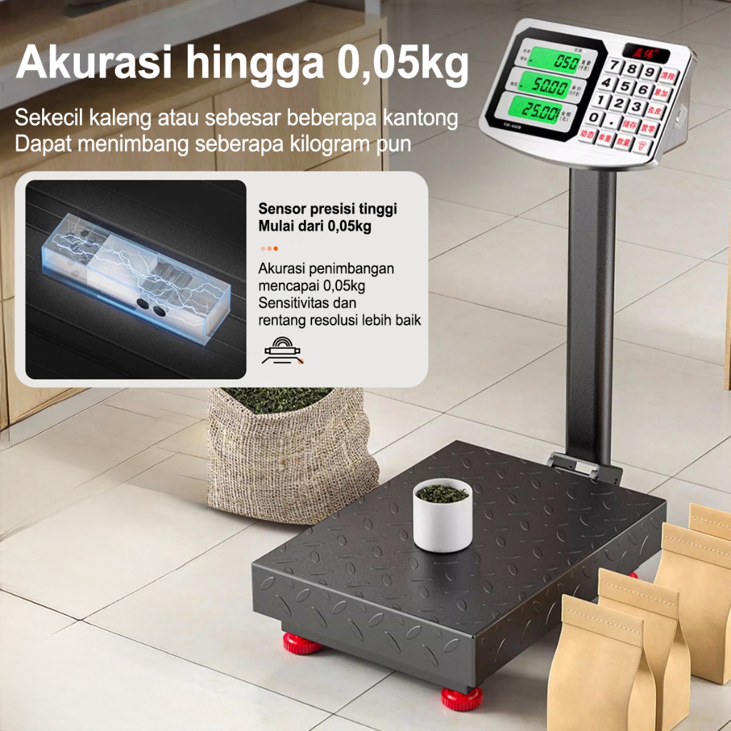 Timbangan Duduk Digital Kapasitas 300KG - Timbangan Duduk Elektronik dengan Charger, Layar Single Display, untuk Sembako, Laundry, Buah, Ekspedisi & Beras | Platform Scale Kapasitas Besar 300Kg