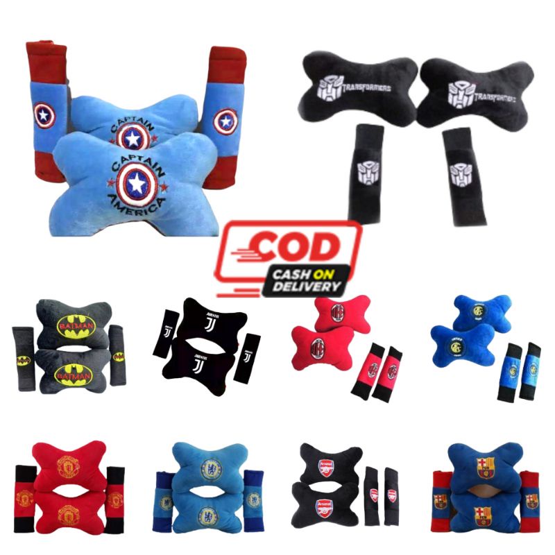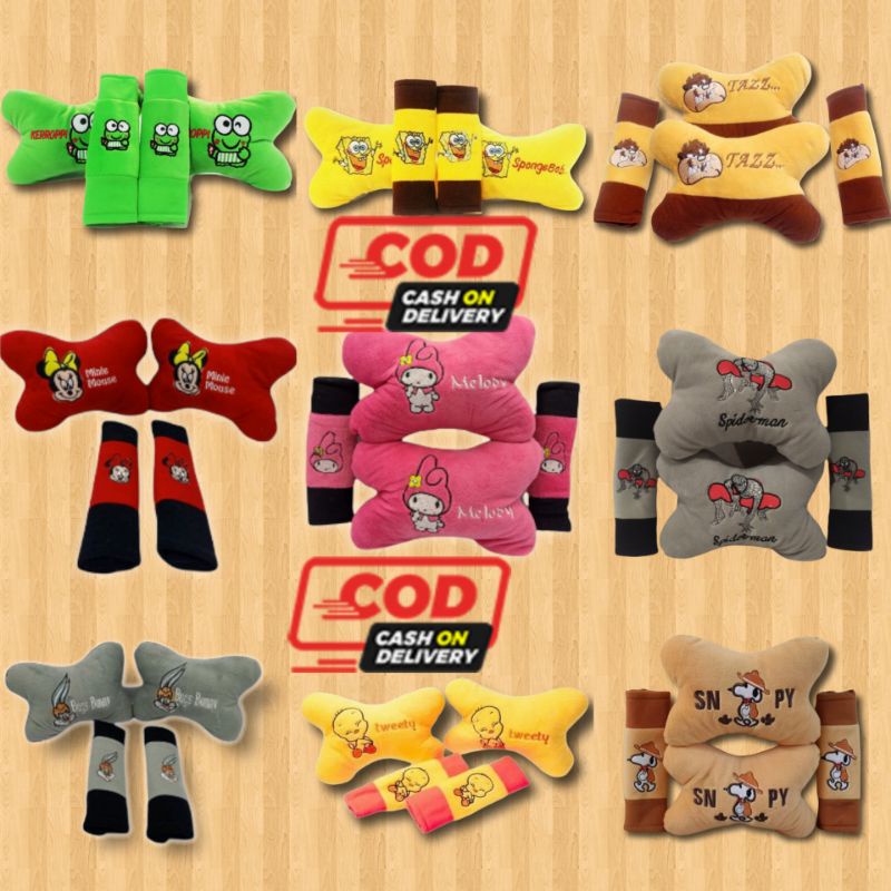 Bantal Mobil 2in1 Set Karakter Cartoon Kartun Set 2in1 Mobil Bantal Karakter Headrest Car