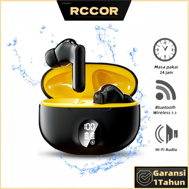 RCCOR Headset TWS Bluetooth Wireless, Earphone Sport Anti Air IPX5 + Layar Baterai | & Gratis Ongkir